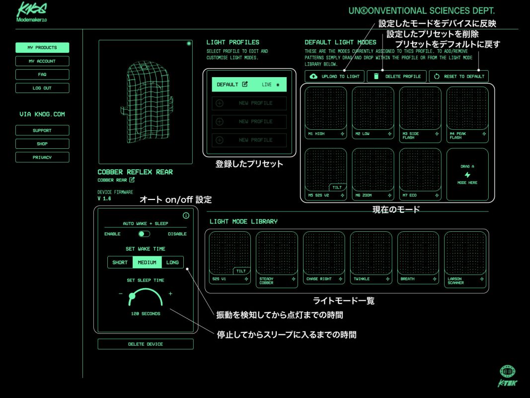 そして knogのライトの魅力として挙げられるのがModemaker