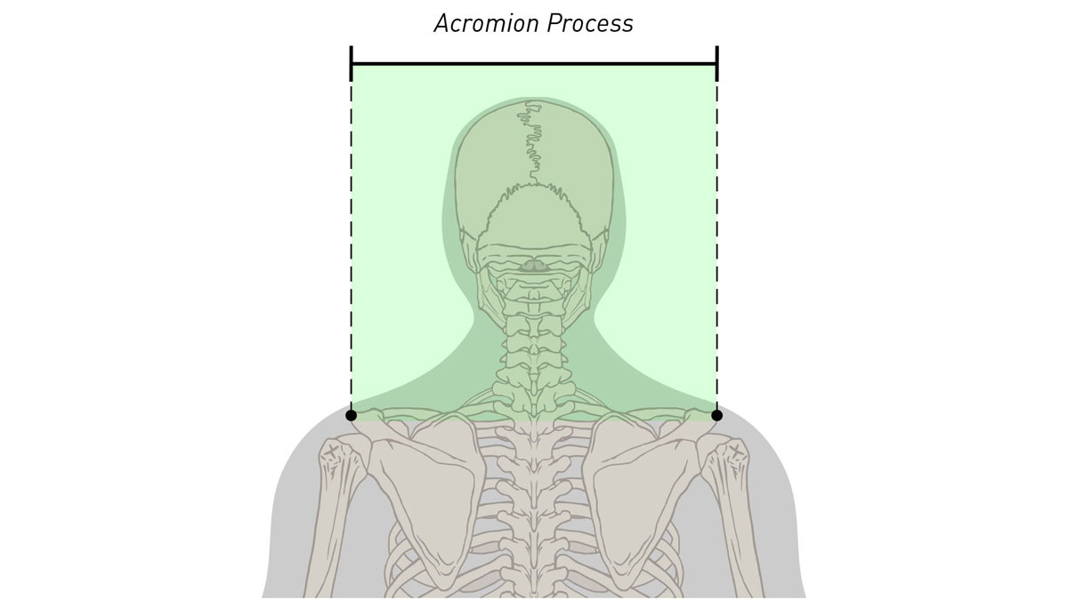 ハンドルバーのサイズをお選びになる際は、左右の肩峰の幅をまず測定すると良いでしょう。これは肩甲骨の最頂部にある突起のことです。